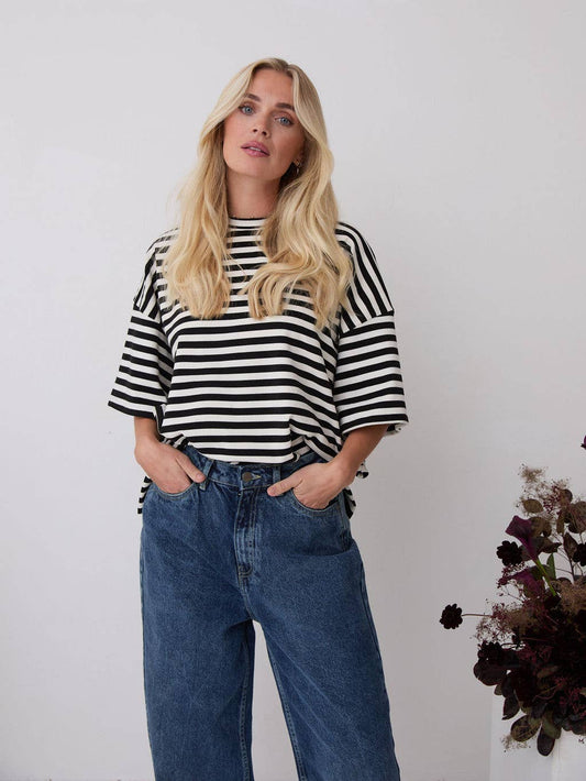 Premium Super Soft Stripe A-Line Tee: Black & White