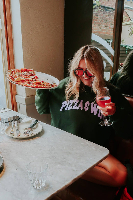 The Pizza & Wine Oversized Sweatshirt in Enchanted Forest Green